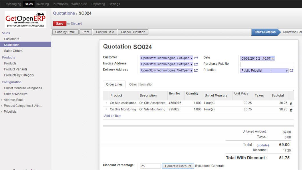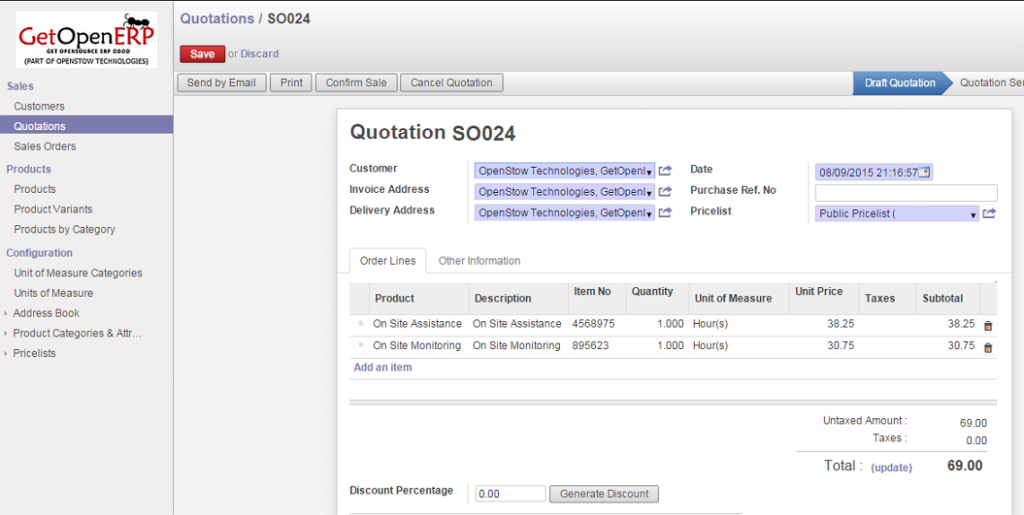 Sales Order / Quotation in Odoo