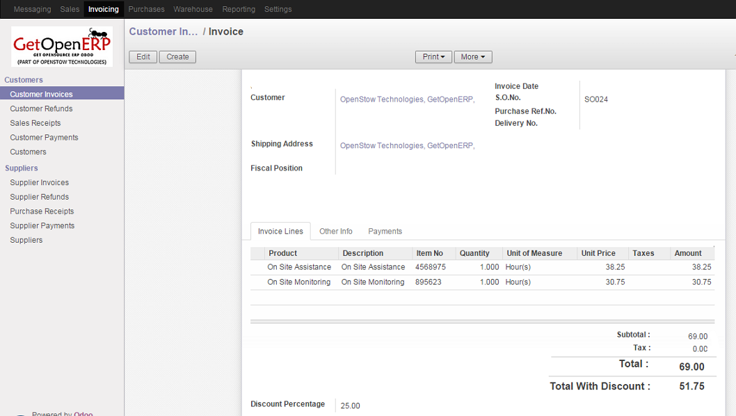 Customer Invoice in Odoo