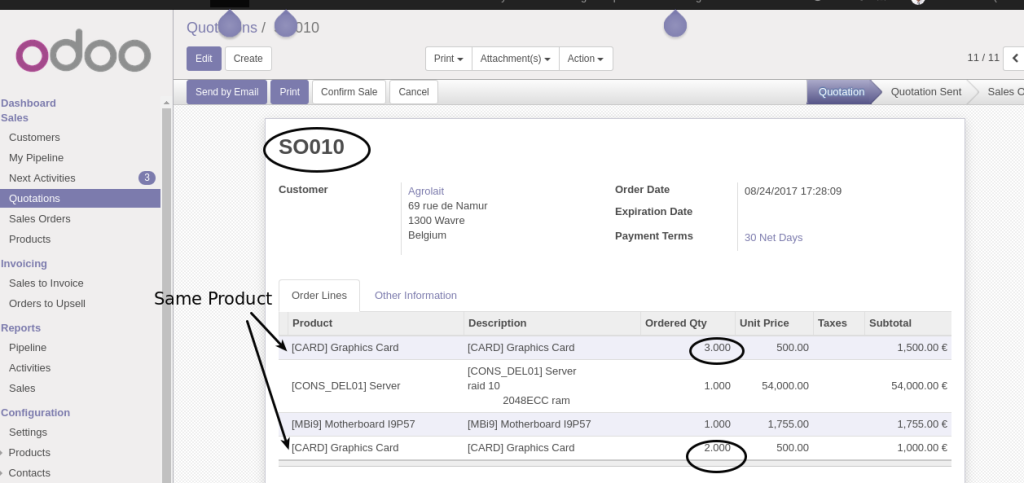Merge Repeated Product in SO, PO , Invoicing Reports in Odoo